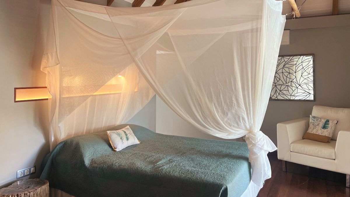 - Lit à colonne de 180X200 cm avec moustiquaire. (bungalow 1)